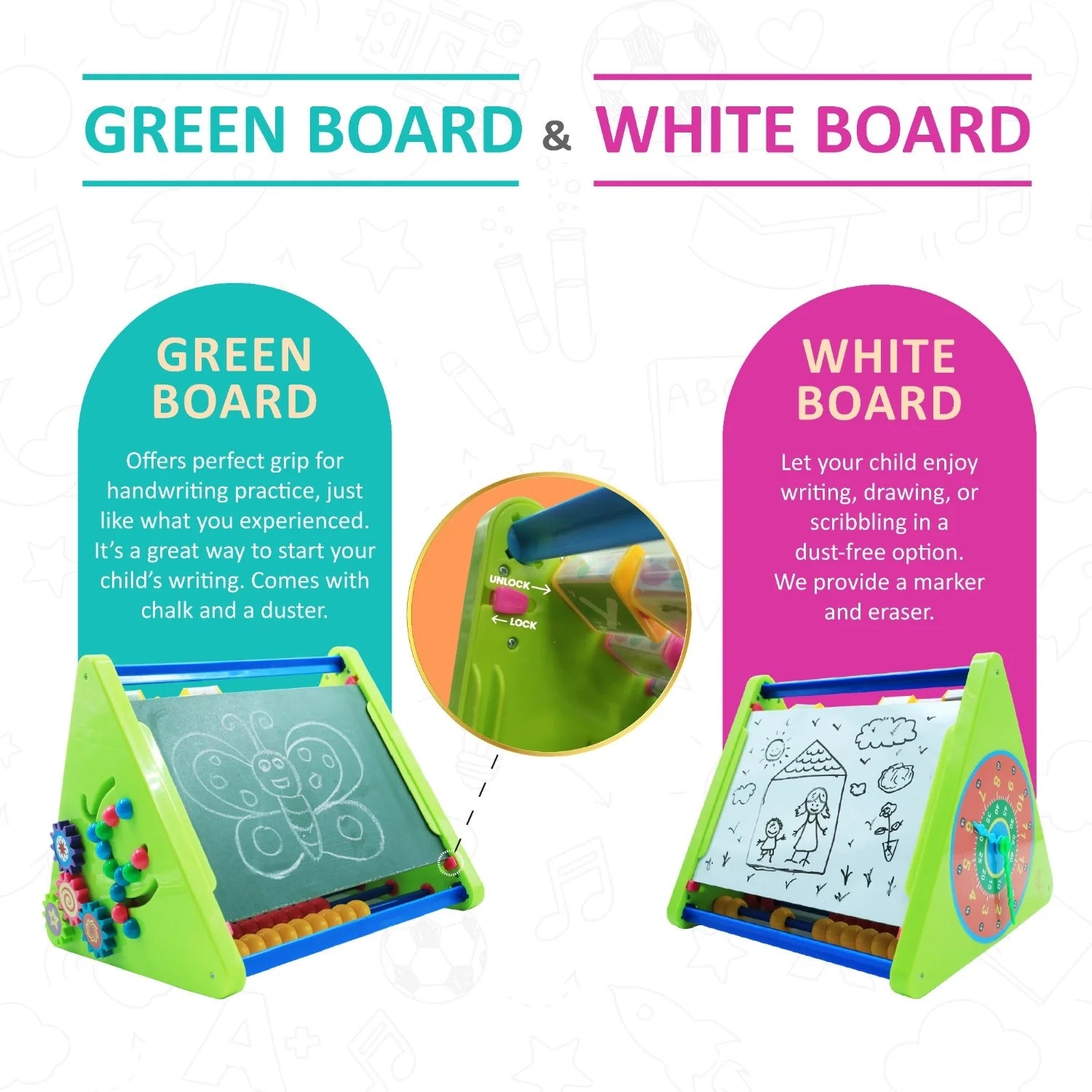 8-in-1 Activity Triangle Toy | Learn English Alphabets, Tamil Letters, States & capitals of India, Abacus, Draw & Writing Board, Clock & Spin Gears – Best Activity Toy for Preschoolers